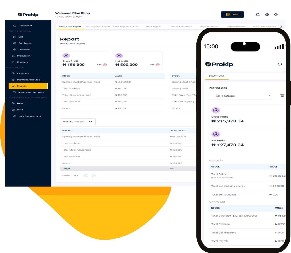 Prokip is an all-in-one business management solution integrating bookkeeping, Point of sales system, inventory Management, Accounting, CRM, and More tailored for businesses like yours in Nigeria and Africa