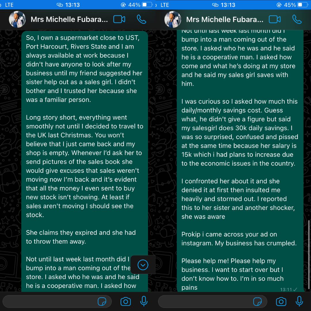Here is Mrs Michelle Fubara whose business had almost crumbled before she stumbled on Prokip...